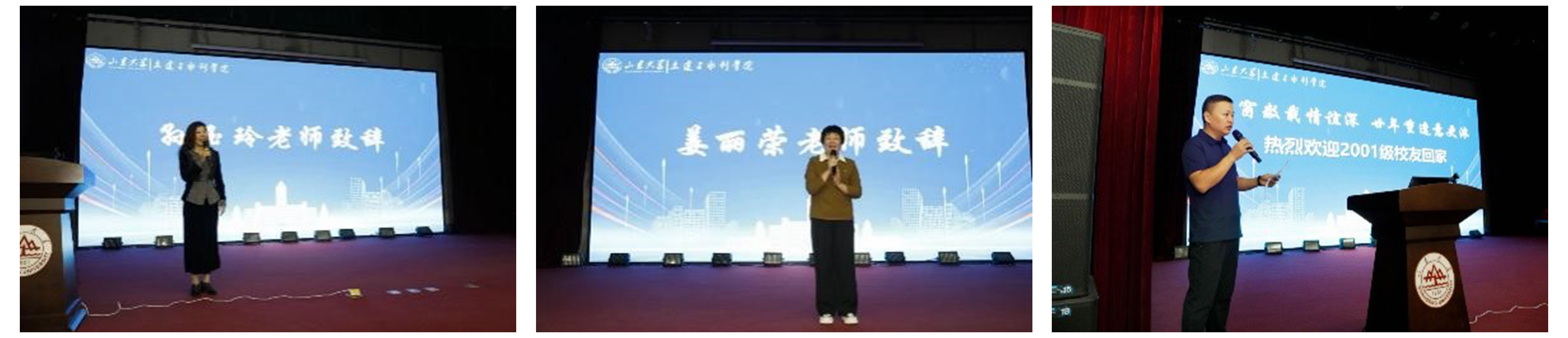 10月3日,土建与水利学院2001级校友毕业二十周年庆祝活动在千佛山校区主楼报告厅隆重举办。土建与水利学院党委书记刘斌、工程训练中心党总支书记孙玉玲出席有关活动。