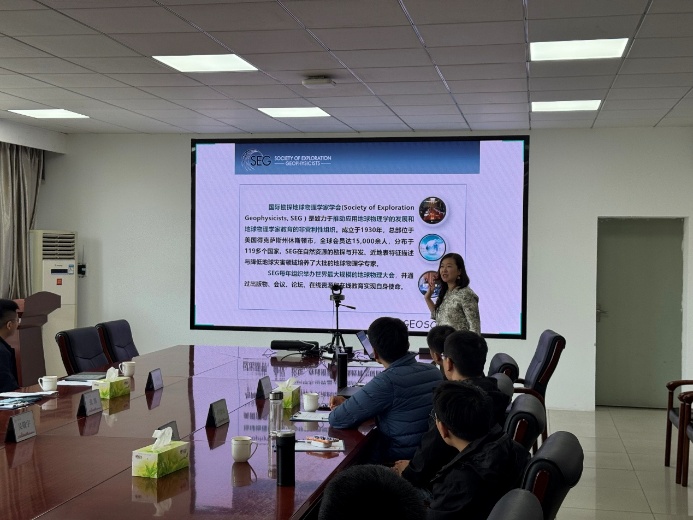 SEG中国办公室吴敬宇女士向同学们分享了SEG对中国学生分会的重视与期望。她强调,中国地球物理学者在国际舞台上正发挥越来越重要的作用,鼓励青年学子“让世界看到中国学生的面貌与努力”,继续以实际行动展现中国青年对地球物理的科研热情与责任担当。