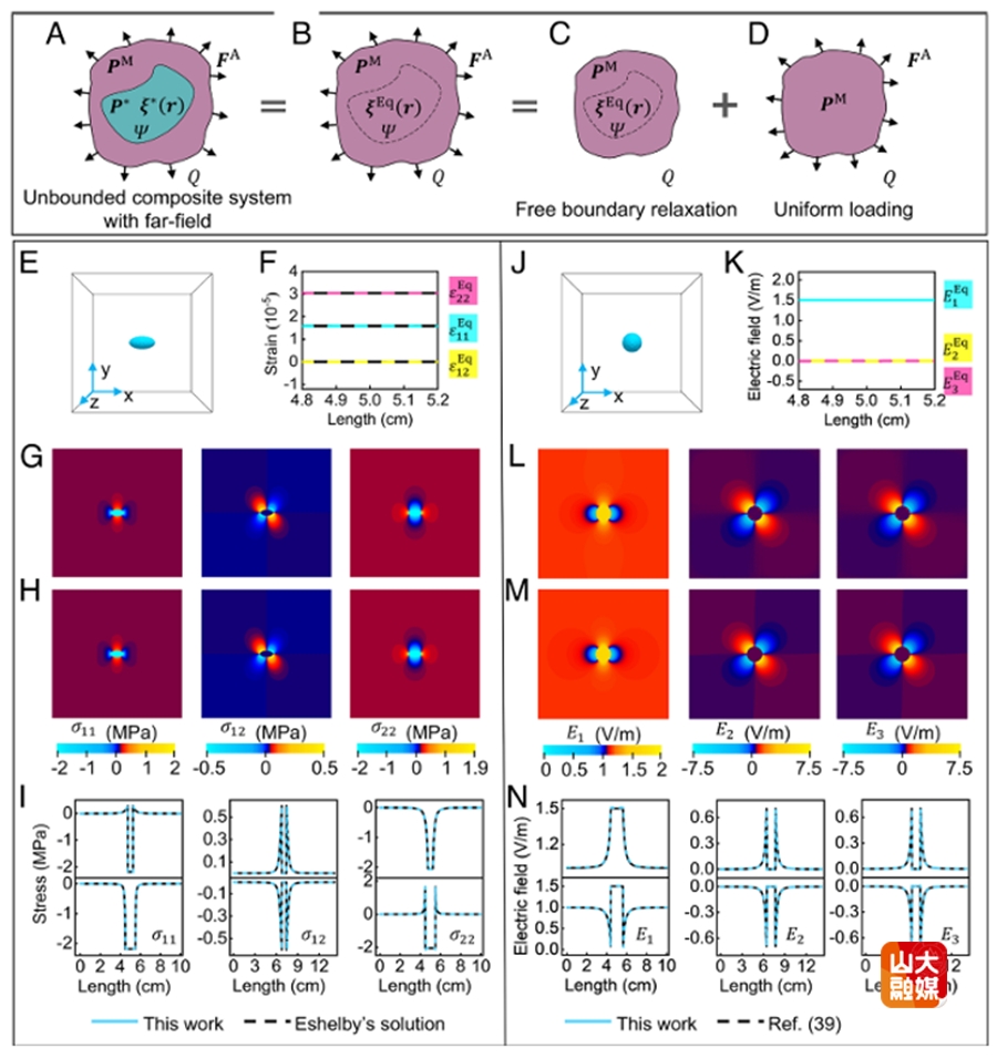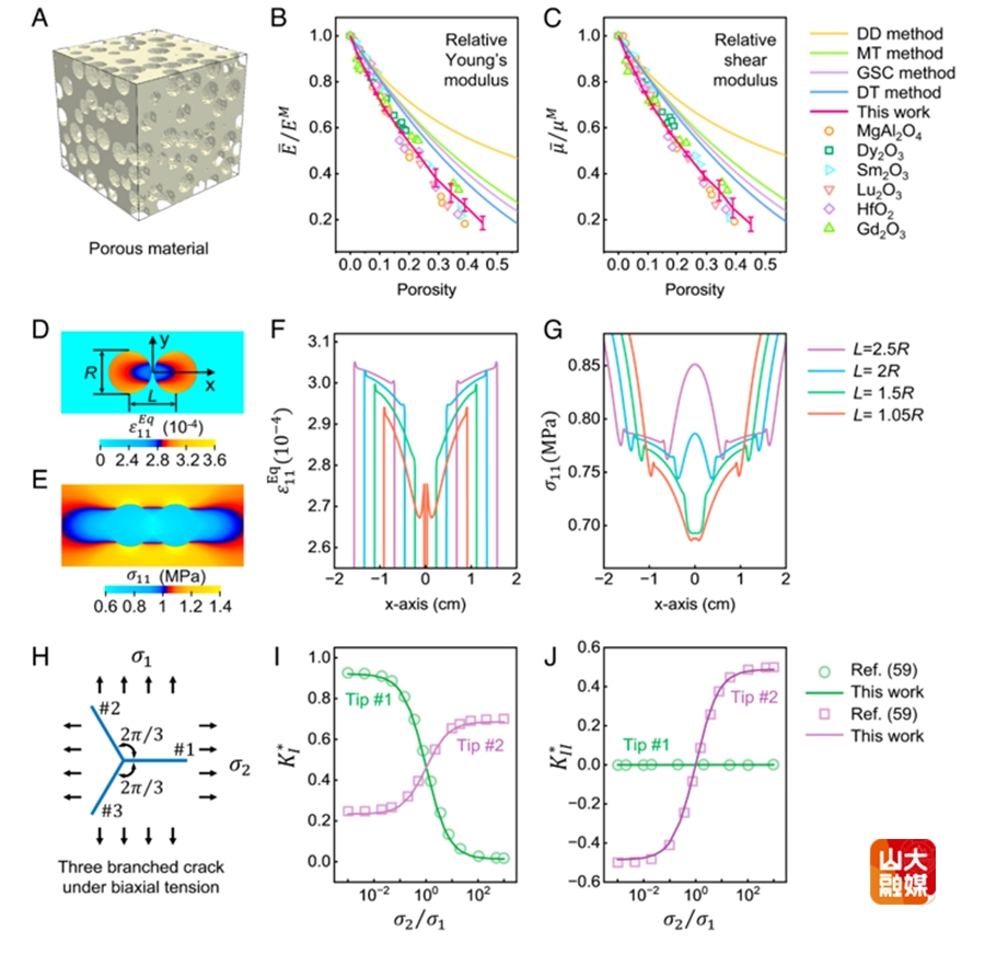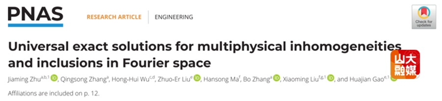近日,山东大学土建与水利学院教授朱家明,联合清华大学高华健院士团队、中科院力学所刘小明研究员团队在《美国科学院院刊》(PNAS)发表研究论文“Universal exact solutions for multiphysical inhomogeneities and inclusions in Fourier space”。该研究建立了广义等效夹杂方程通用精确解,统一了单夹杂和多夹杂体系理论框架,建立了多物理复合材料平均模量精确解,提出了任意形状裂纹应力强度因子通解。这项突破性工作解决了固体力学、固体物理和材料科学等多学科的长期难题。该研究得到了国家自然科学基金、山东省自然科学基金和广东省自然科学基金等资助。